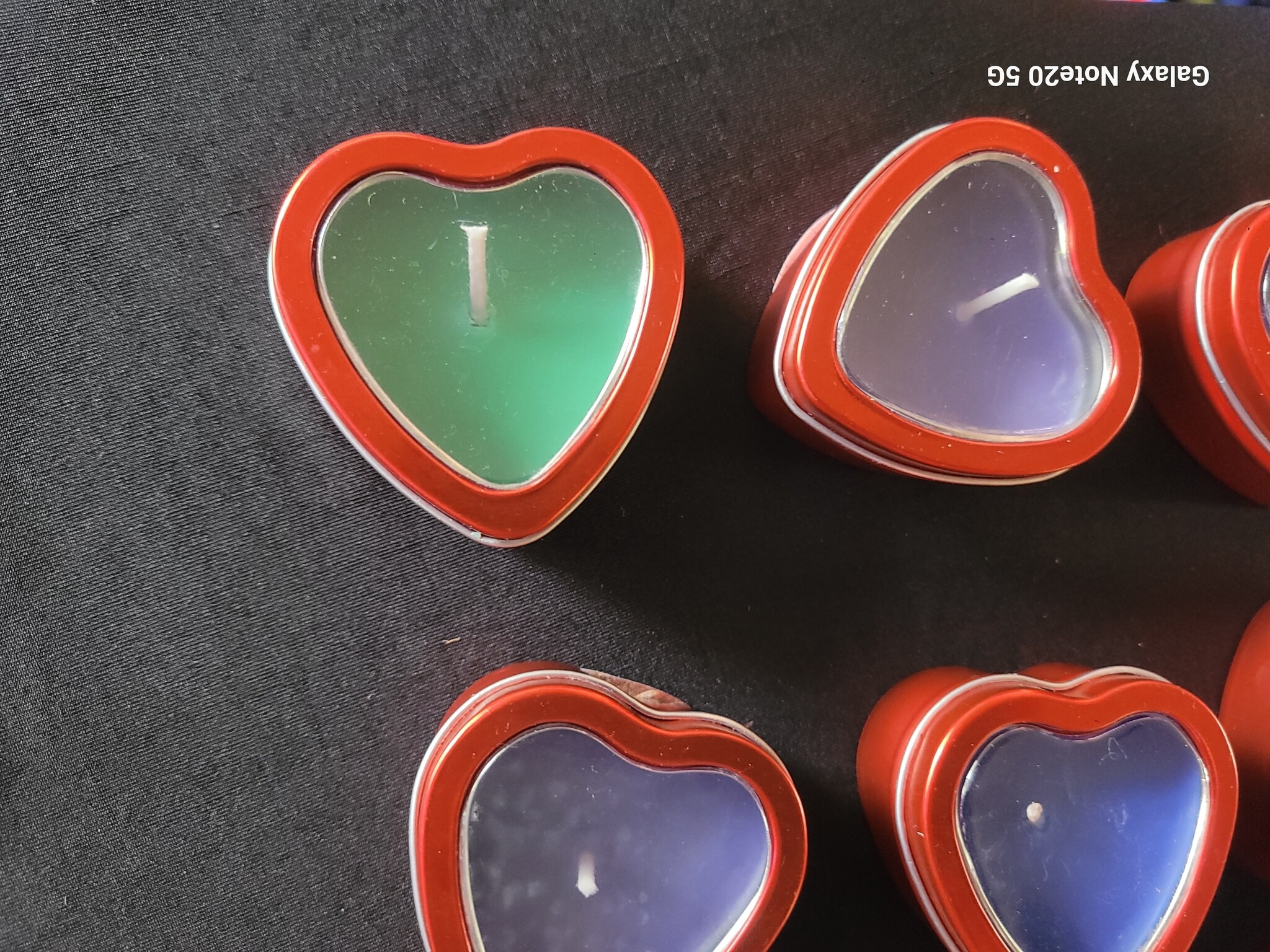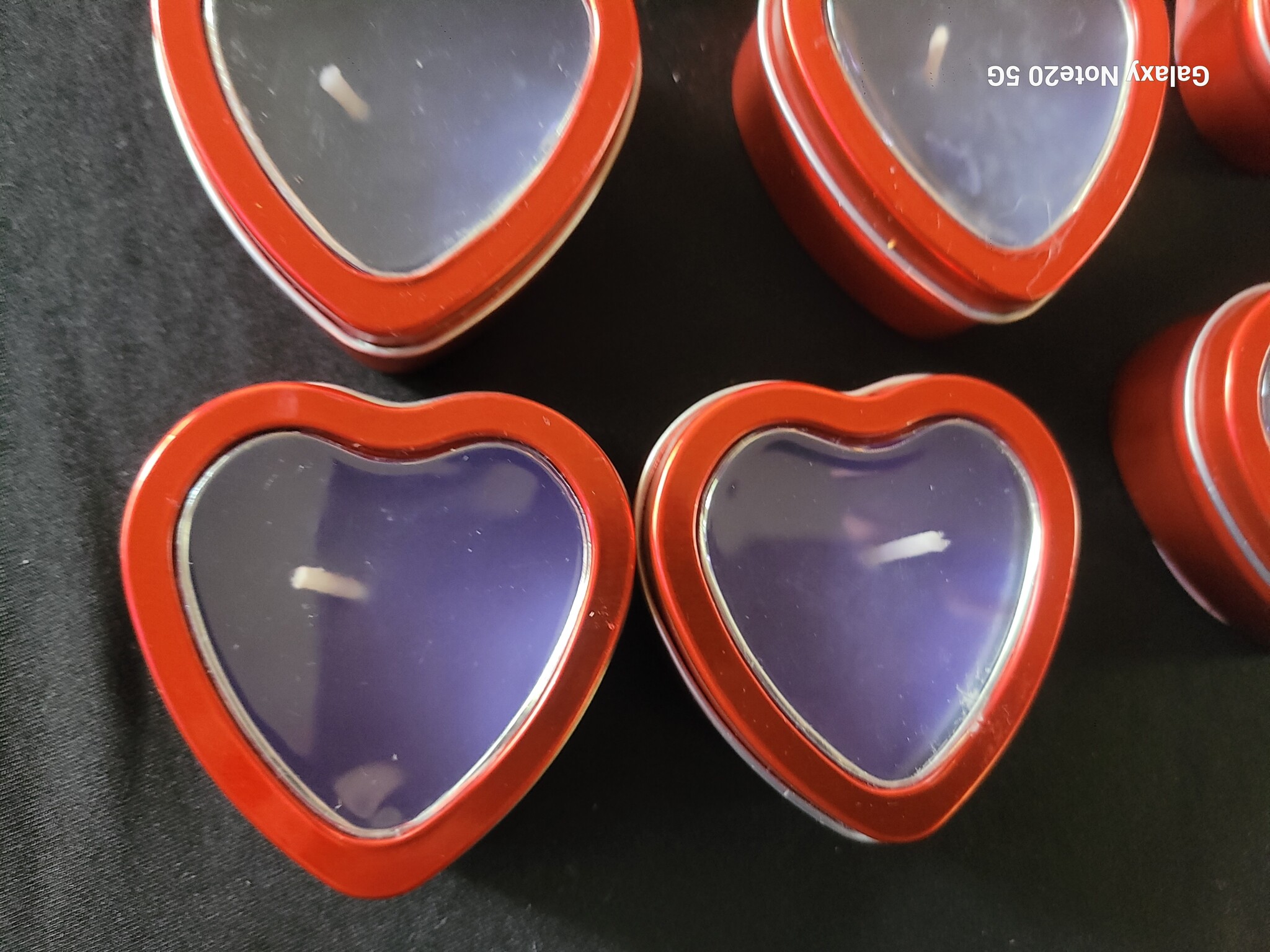 heart candles heart shape candle tin Cheapest shipping from $0 Stock Status: 5 pcs Delivery Status: 1-3 days $1.08 Including Tax: $0.08 Quantity pcs Add To Cart Description various scents and non scented candles. blues and purples and a green heart shape candle tin.